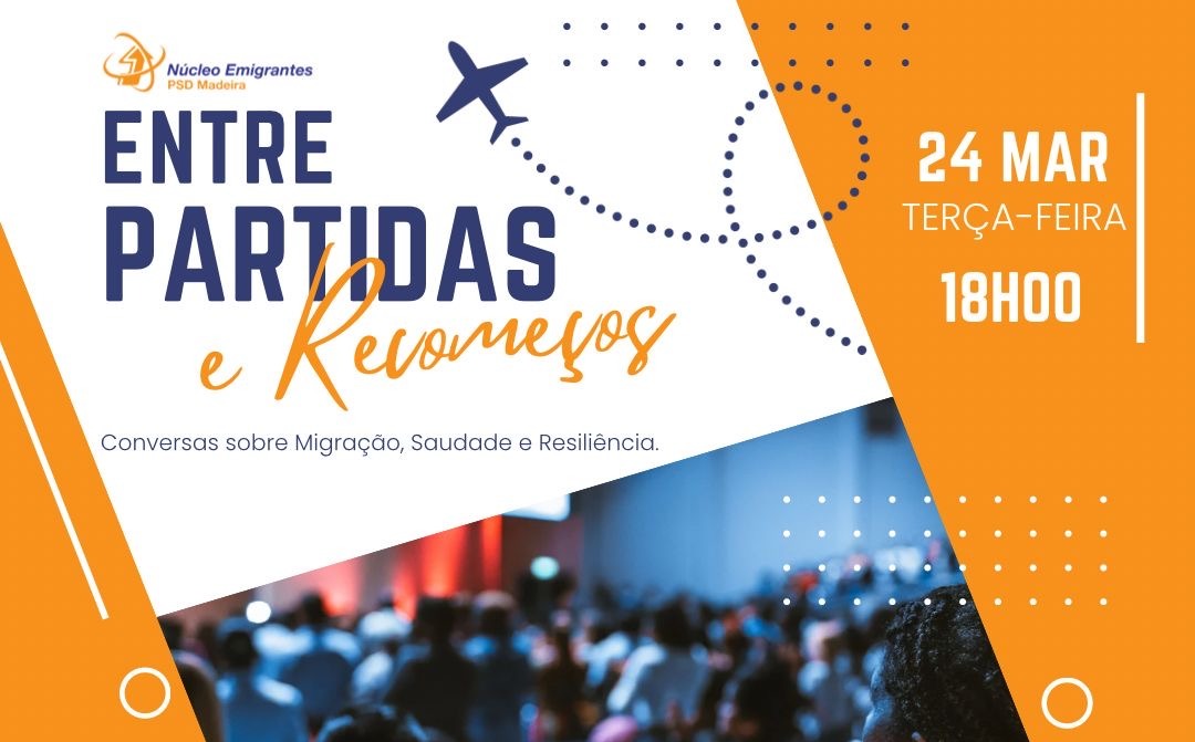 O Núcleo de Emigrantes do PSD/Madeira promove, a partir do próximo dia 24 de março, o Ciclo de Conferências “Entre Partidas e Recomeços”, um evento dedicado à reflexão sobre os desafios e as oportunidades associadas à Migração, à Diáspora e à integração.